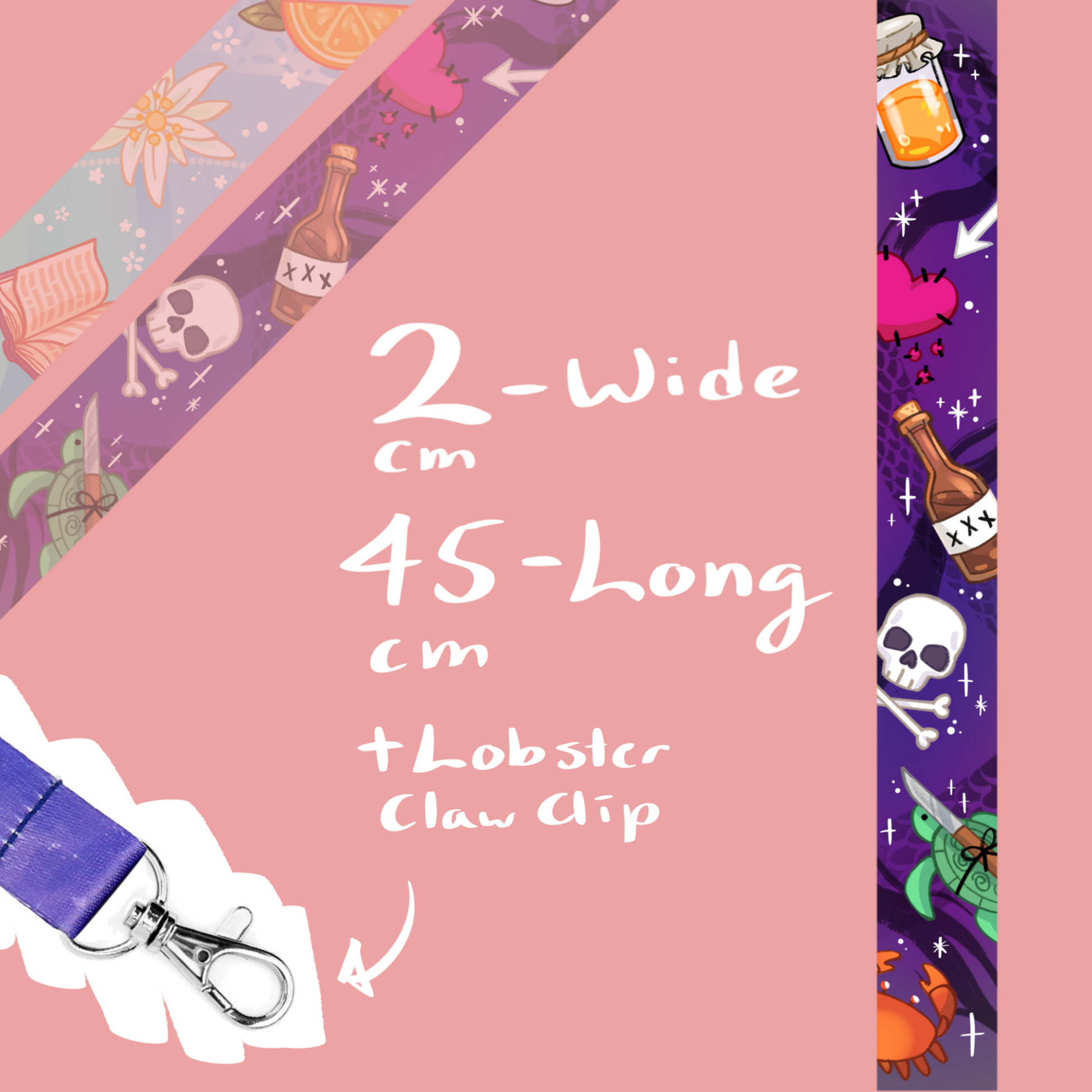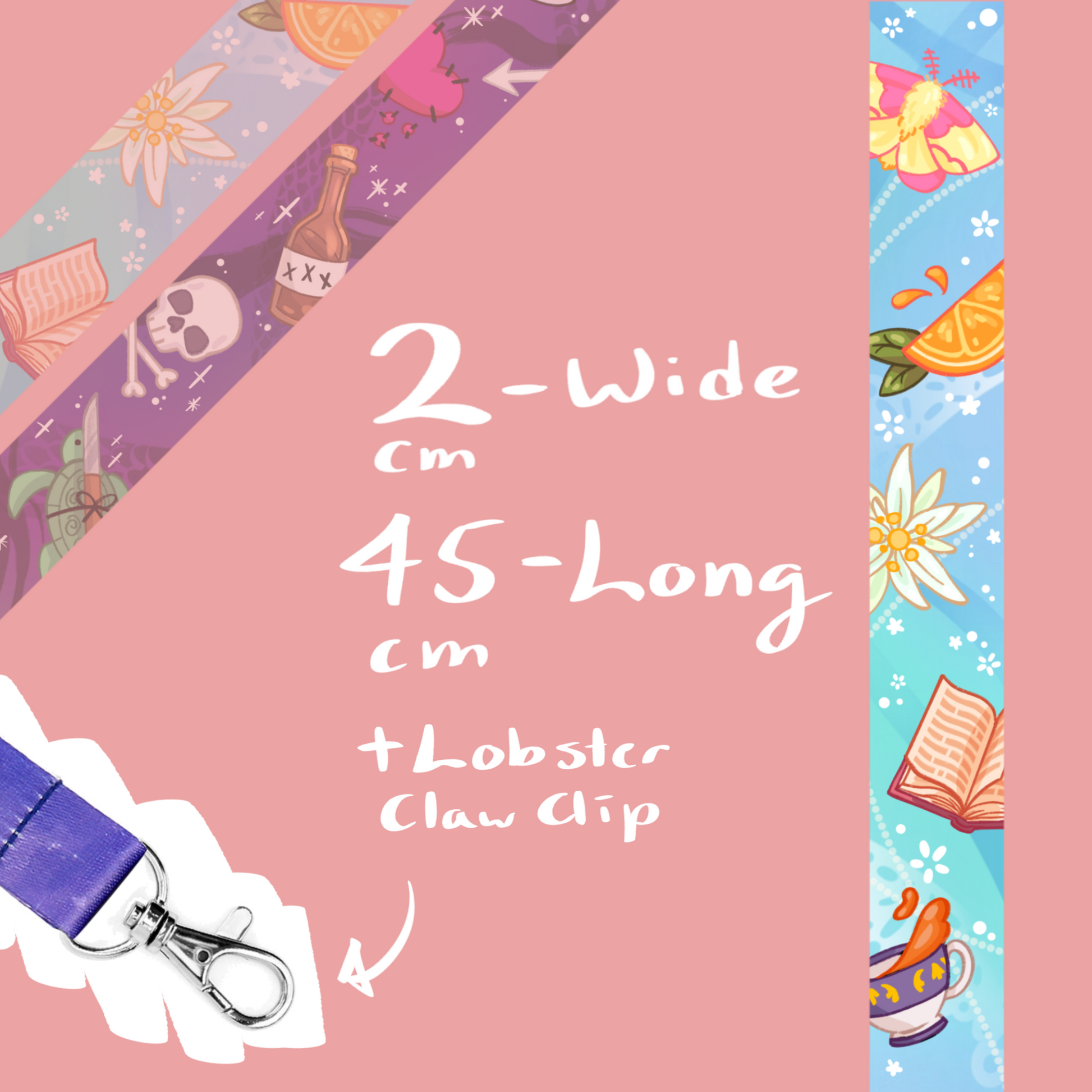 Heat printed fabric // 2cm x 45cm // Lobster clip